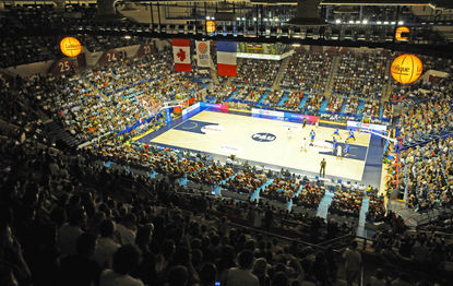 2 Places, derrière le banc des joueurs de l’élan béarnais.