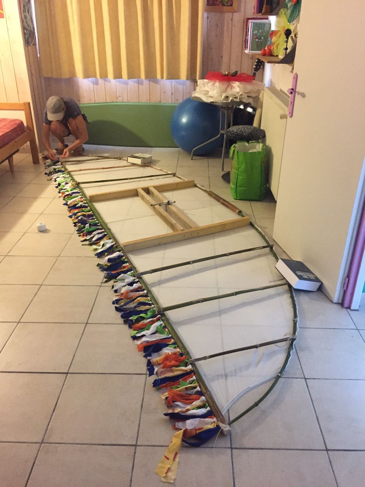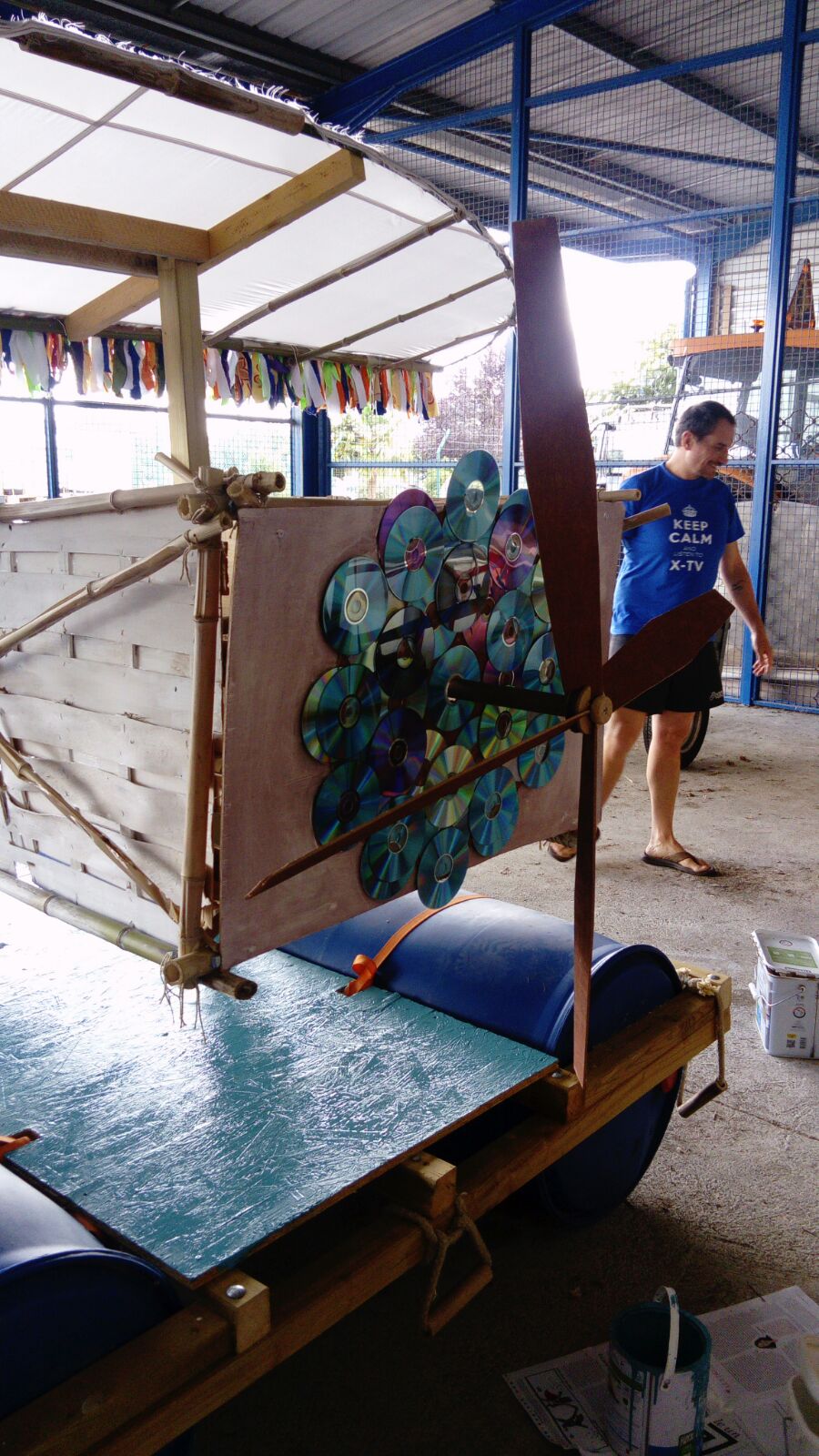 Dimanche 17 après-midi, départ à 15h37 précises (comptez une bonne heure de retard en vrai) du Pont d’Espagne à Jurançon. Pour une descente d’environ une heure jusqu’à Laroin. Il y a plus de 50 bateaux inscrits, certains vraiment délirants, d’autres vraiment très beaux. Cette année chaque bateau doit représenter un pays. Nous avons choisi le Népal pour notre avion d’où les drapeaux à prière et son nom : « N’est pas laid ».